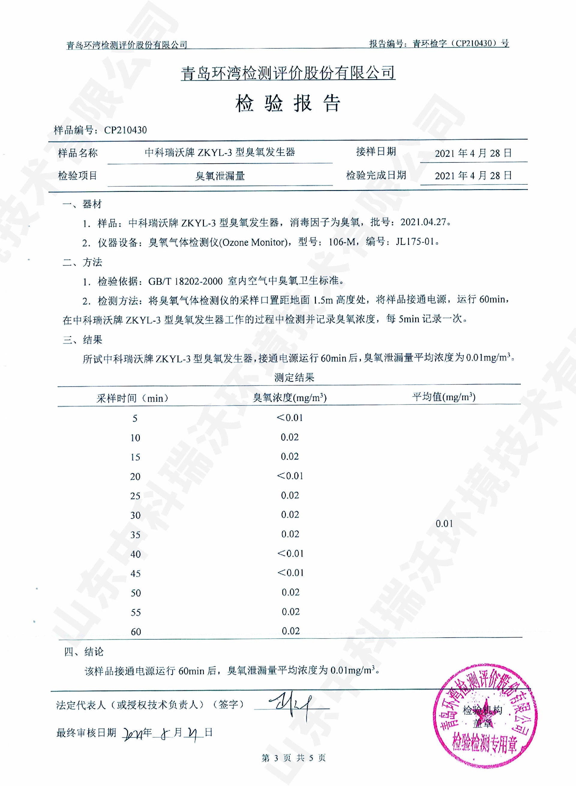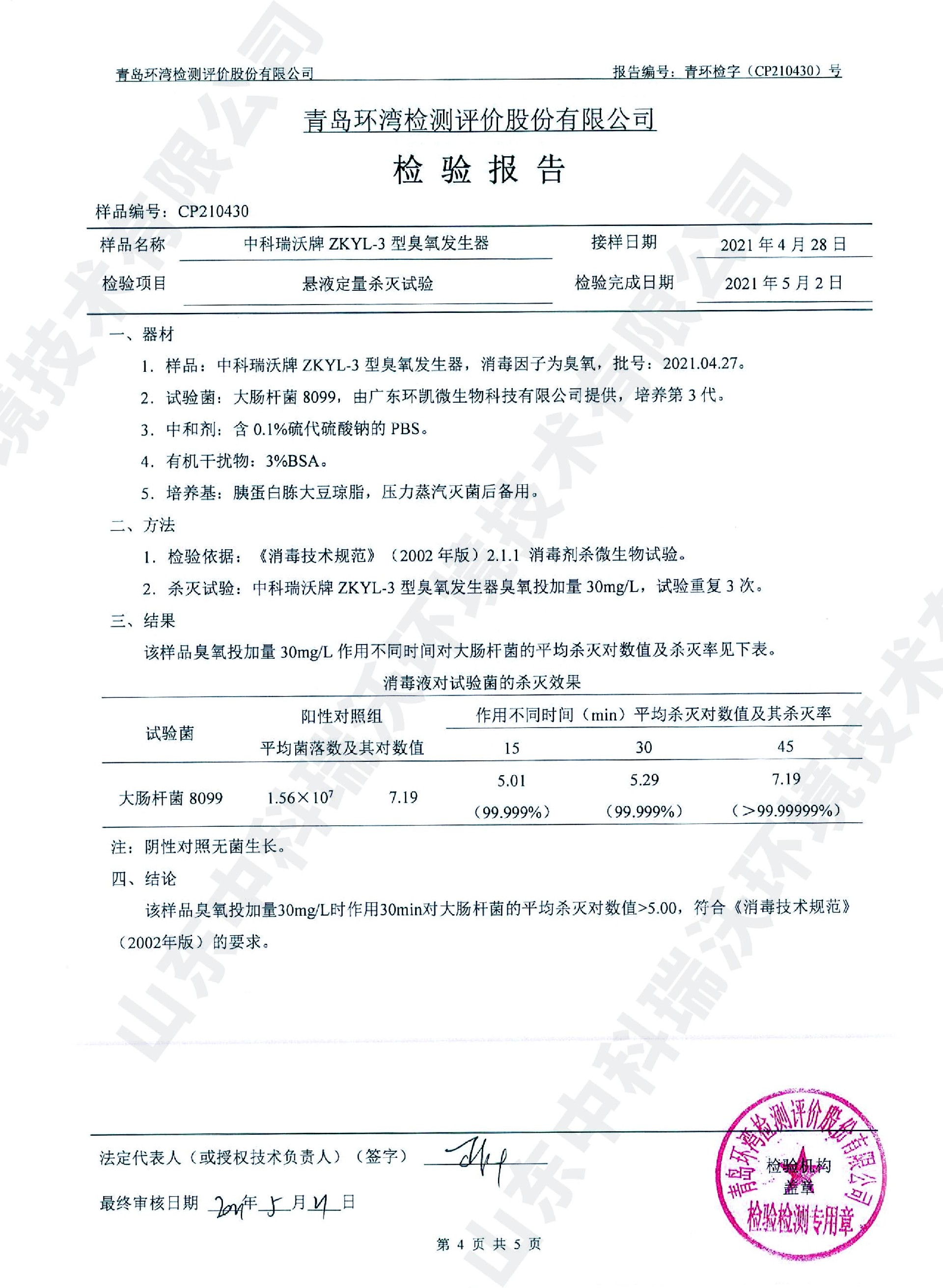 醫(yī)療污水處理設(shè)備檢測(cè)報(bào)告~臭氧消毒