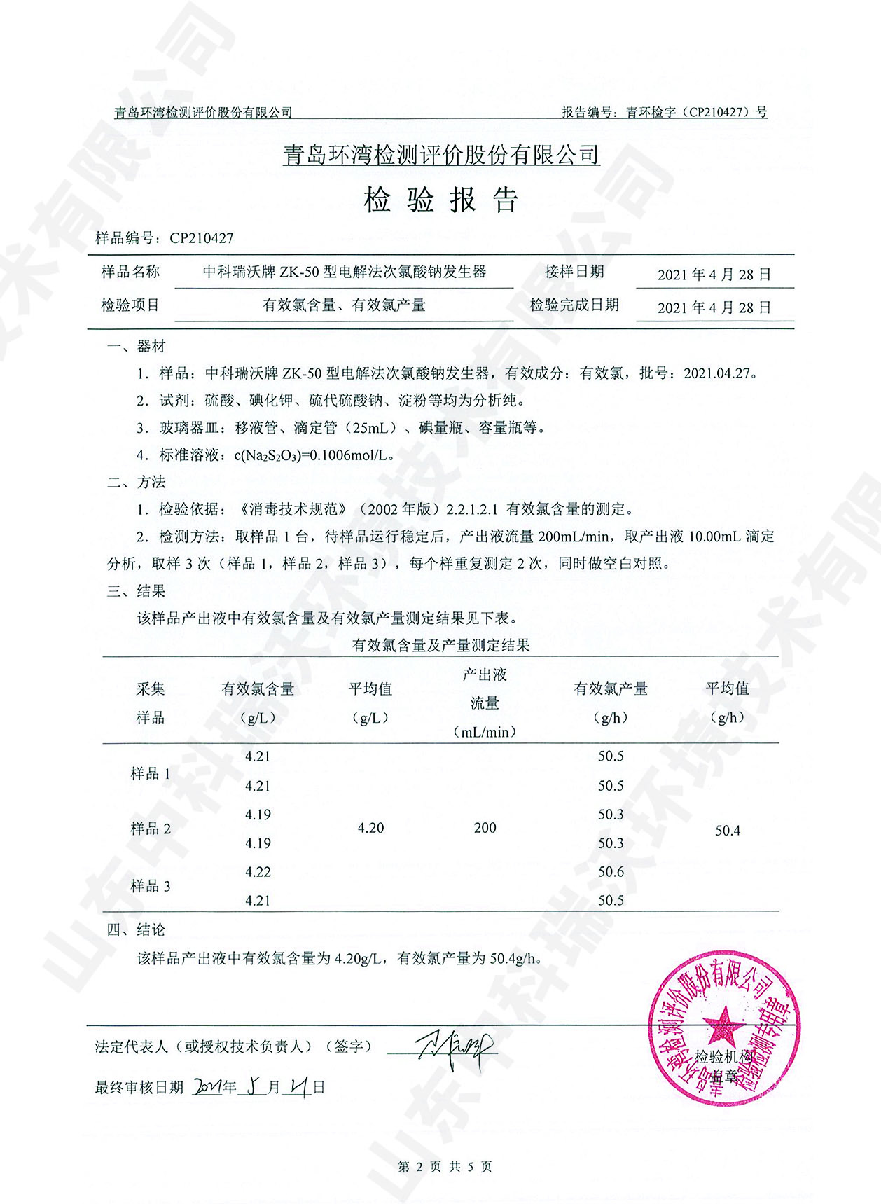 醫(yī)療污水處理設(shè)備檢測報告~次氯酸鈉消毒